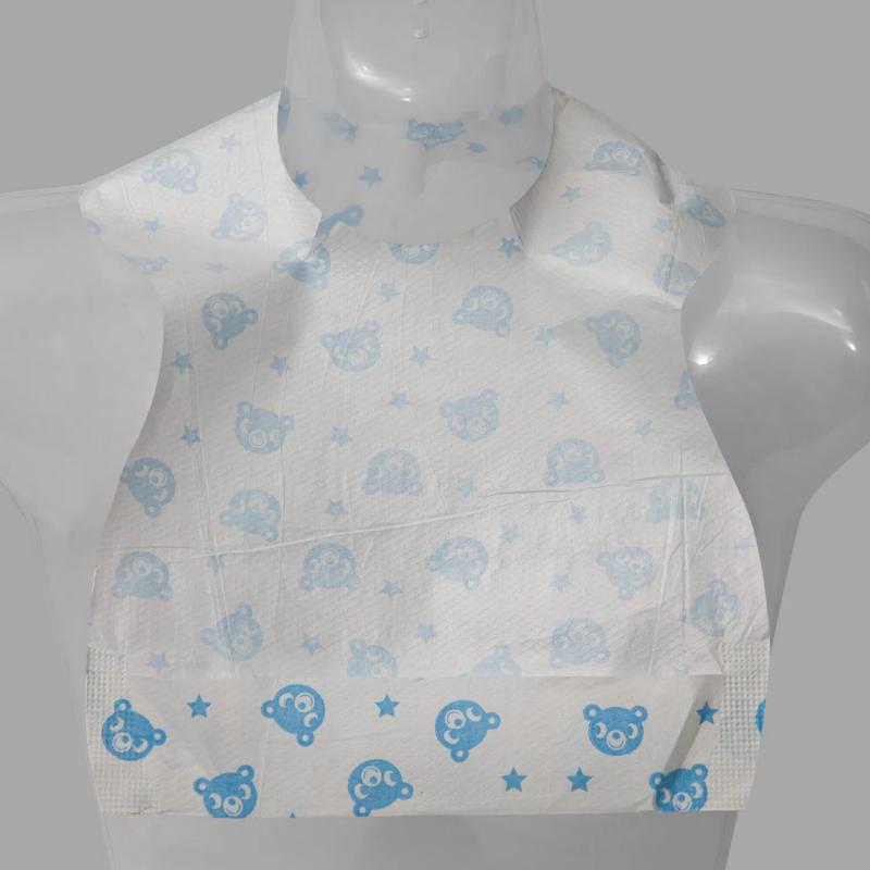 Protection imperméable : la surface laminée en film PE empêche la pénétration des liquides — essentiel pour les bavoirs jetables imperméables pour bébés.
