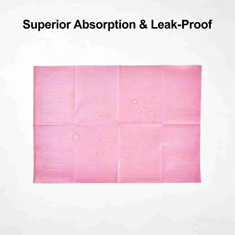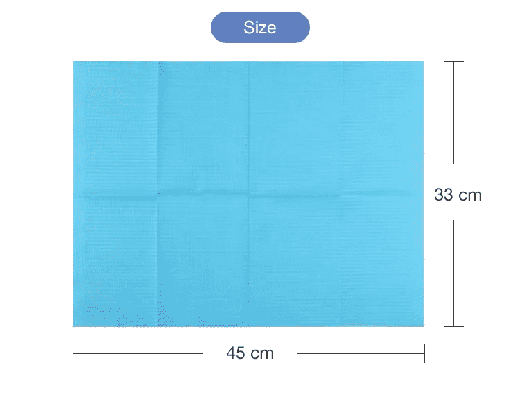 A : Ses dimensions sont de 45×66 cm, ce qui est suffisamment grand pour offrir une couverture étendue aux patients adultes et enfants pendant les traitements dentaires, protégeant ainsi leurs vêtements et la zone environnante.